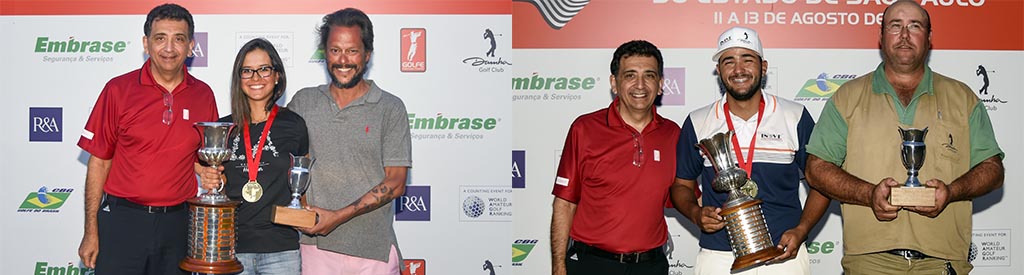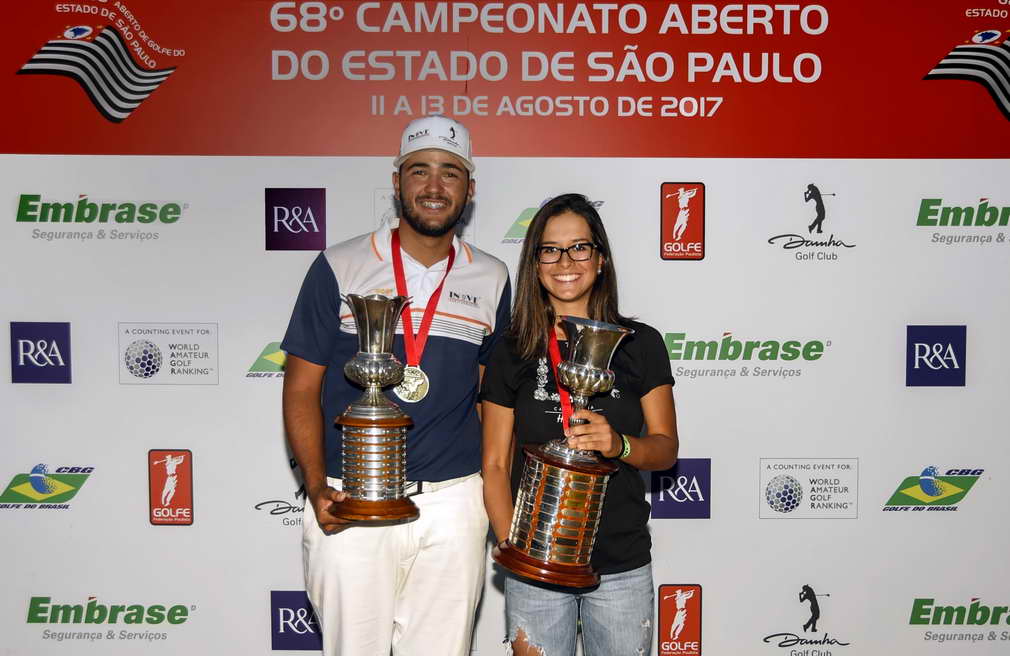 Em duas finais emocionantes e de elevado nível técnico, os paulistas Marcos Negrini, que jogava em casa, e Lauren Grinberg, do Lago Azul, conquistaram os títulos do 68º Aberto do Estado de São Paulo, uma das mais antigas, tradicionais e importantes competições do golfe brasileiro, que começou na sexta-feira, 11 de agosto, e terminou neste domingo, 13, no Damha Golf Club, em São Carlos (SP). O torneio organizado pela Federação Paulista de Golfe (FPG), teve patrocínio da Embrase, e apoio do R&A, como evento válido para o Ranking Mundial Amador de Golfe (WAGR). Também apoiaram o evento a Confederação Brasileira de Golfe (CBG); o Damha GC e a Santa Emília/Honda, que ofereceu um Civic Touring 1.5 Turbo, no valor de R$ 125 mil para quem fizesse um hole-in-one, mas ninguém levou.