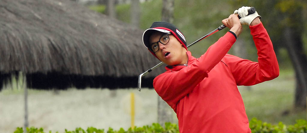 Feminino – No feminino, com saídas pelo tee do 10, Laura jogou uma acima de ida, com um birdie, mas fechou o dia com três bogeys nos cinco buracos finais para jogar 75 e ser líder por uma. Fernanda, que também só fez um birdie e jogou quatro acima de ida com um duplo bogey no 18 (seu nono buraco), melhorou na volta final para jogar 76 (+5) e ficar sozinha em segundo. A paranaense Ana Beatriz Cordeiro Pinhais completou o pelotão dessa quinta-feira, com um 78, sem birdie.