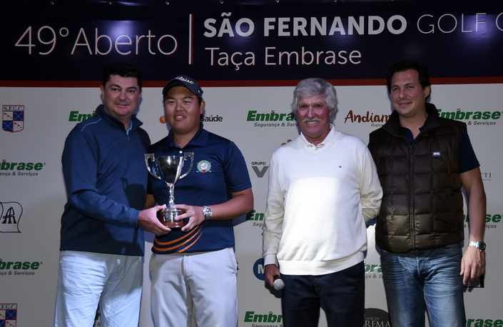 Numa das finais mais emocionantes da história do torneio, o gaúcho Gustavo Chuang, de 23 anos, superou Herik Machado, o número 1 do Brasil; Pedro Nagayama, o melhor jogador da casa; e Tomaz Pimenta com um birdie no primeiro buraco extra para vencer o quádruplo playoff que decidiu o título do 49º Aberto do São Fernando Golf Club 2016 – Taça Embrase, neste domingo, em Cotia (SP). O torneio estreou como evento válido para o ranking mundial de golfe, além de contar pontos para os rankings brasileiro, paulista e do São Fernando.