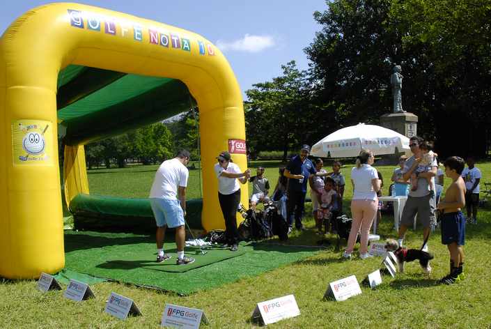 A FPG levou ao local a estrutura inflável utilizada nos projetos Golfe de Ana a Zé, que já deu 10 mil aulas gratuitas no ano passado, e Golfe Nota 10, que leva o ensino da modalidade para dentro das escolas.