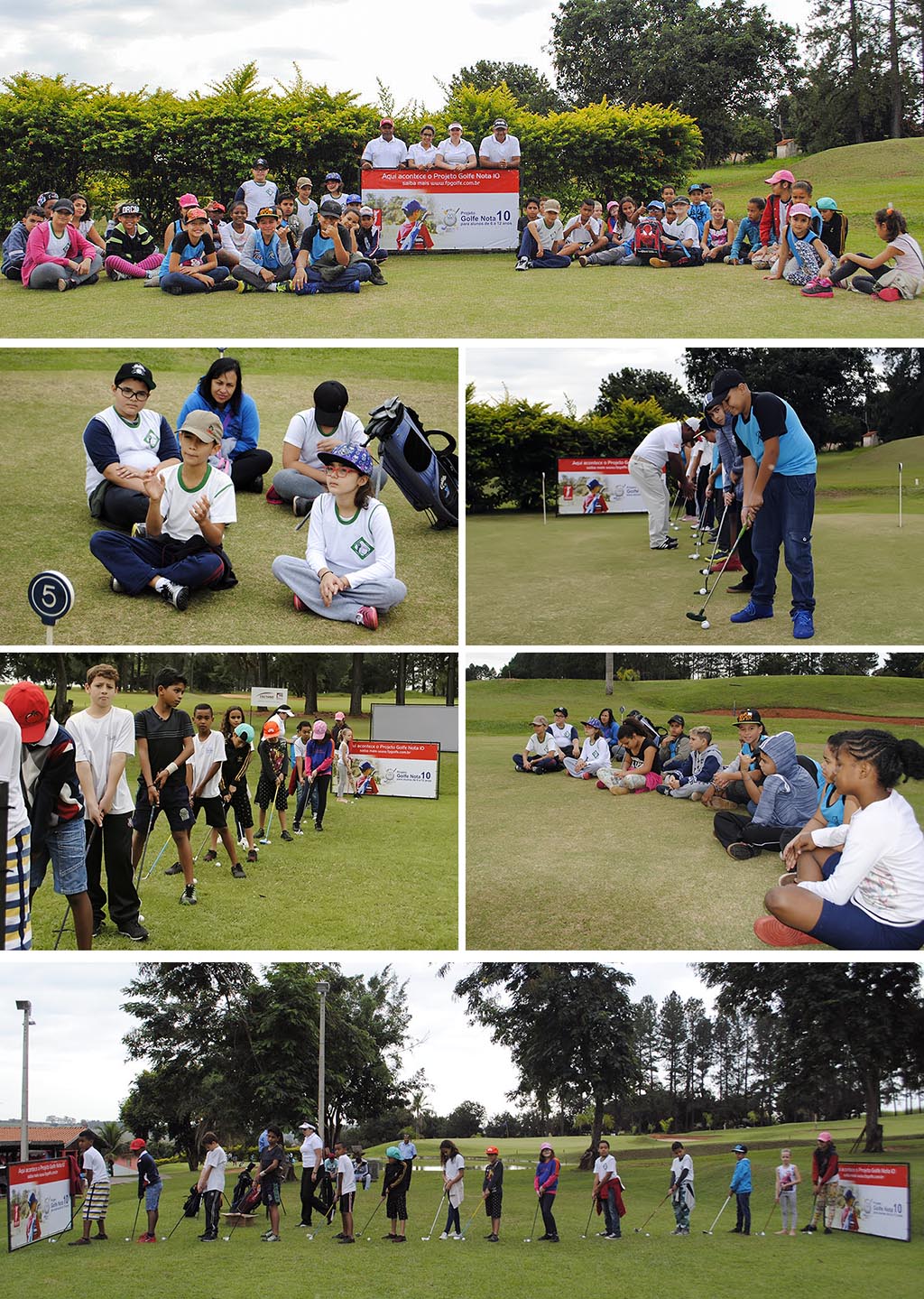 Após receber as informações sobre essa continuidade do Golfe Nota 10, os alunos foram apresentados a todos os materiais necessários para a prática do esporte, visitando, a seguir, o campo de golfe para conhecer de perto sua estrutura, incluindo os tees de saída, raias, bancas de areia, obstáculos de água e greens. A seguir, todos tiveram aulas no green de prática, passando depois às aulas no bate-bola, onde puderam bater tacadas mais longas, seguindo a metodologia do projeto.