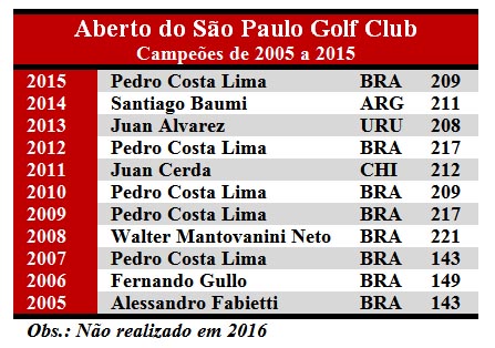 Ex-campeões – Com isso, os dois únicos ex-campeões recentes em campo, serão Walter Mantovanini Neto, o Tito, do São Paulo, que venceu a competição em 2008, e Alessandro Fabietti, do São Fernando, campeão em 2005. O Aberto do São Paulo é limitado a jogadores de até 19,4 de handicap índex e poderá ter cortes nas quatro categorias em disputa (scratch e três com hcpx) a critério dos organizadores.