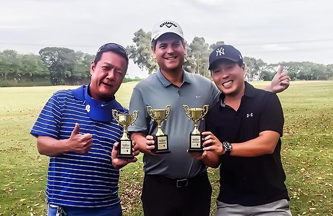 Vitória e desempate – O time campeão foi o Motta Filho, formado por José Motta Filho, Massao Kanesaki e Takashi Koga (foto), que somaram 23 tacadas. Os vice-campeões, com 25 tacadas, foram da equipe Africa Ambiental, representada por Rafael Belizário, André Carvalho e João Gabriel. Já no terceiro lugar houve empate entre três equipes com 26 tacadas, sendo necessários cinco buracos extras para dar o troféu para o time da Top Serv, que teve Erneso Brezzi, e Gladstine Silva e Paulo Monteiro.