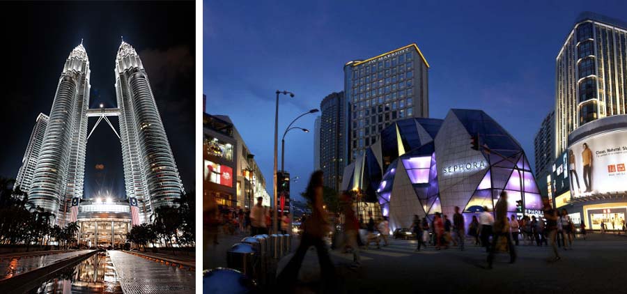 Ao lado, vista aérea da sede do TPC Kuala Lumpur, campo que vai sediar a rodada final. Abaixo, as Petrona Towers e o Marriot, localizado no melhor ponto da cidade